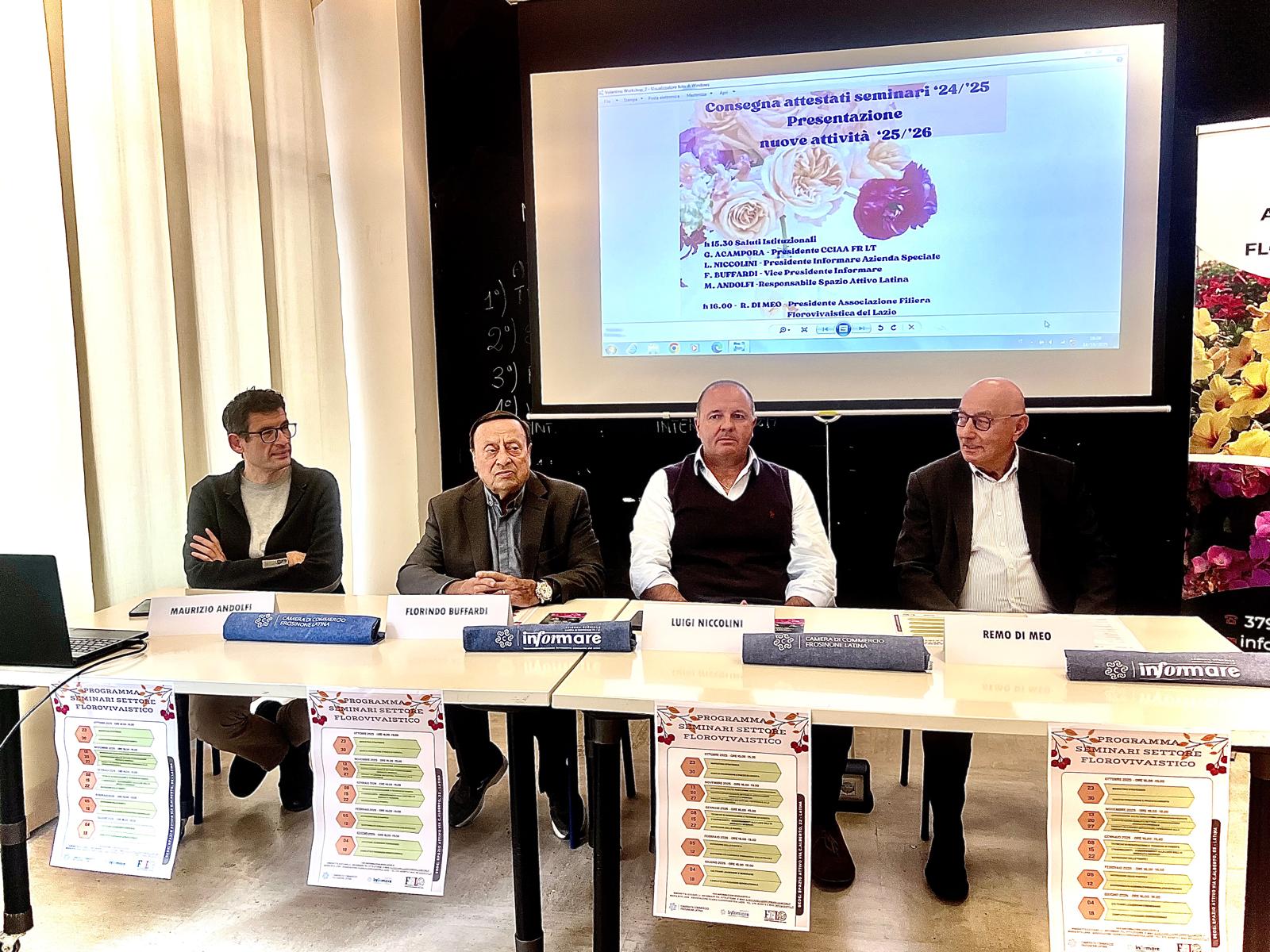 Alla luce degli ottimi risultati raggiunti, la Camera di Commercio di Frosinone Latina ha deciso di proseguire nella collaborazione con l’Associazione Filiera Florovivaistica del Lazio e con Lazio Innova. L’Azienda Speciale Informare ha così progettato un nuovo ciclo di seminari – presentato oggi - che prenderà il via il 23 ottobre 2025 e si concluderà a giugno 2026.
